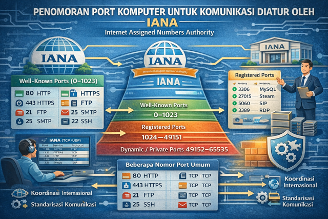 Dalam dunia jaringan komputer dan internet, komunikasi antar perangkat tidak hanya bergantung pada alamat IP, tetapi juga pada nomor port. Nomor port berfungsi sebagai penanda jalur komunikasi...